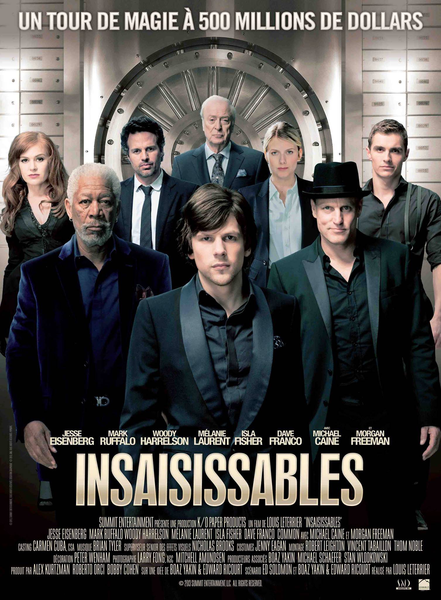 Insaisissables est un film franco-américain réalisé en 2013 par Louis Leterier. Dans ce film on retrouve dans les rôles principaux Jesse Eisenberg, Isla Fisher, Mark Ruffalo, Dave Franco, Woody Harrelson. On retrouve aussi Morgan Freeman et Michael Caine.